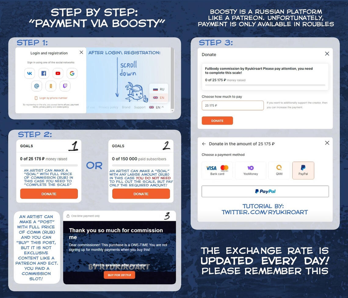 Via BoostyNo need to register, fast payment. Paypal is working.